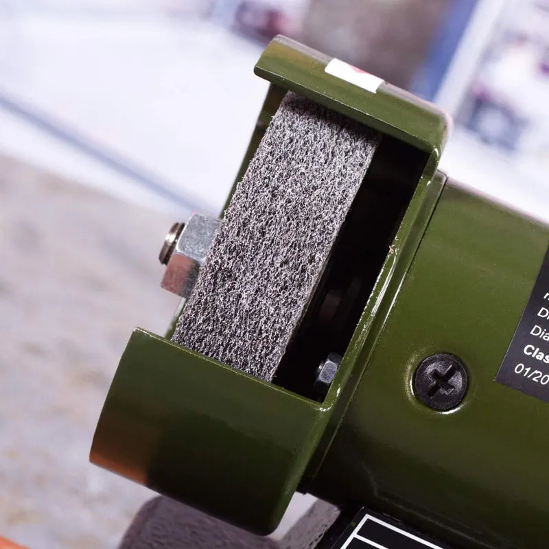 Características Trae 4 perforaciones para fijar a un banco. Manilla para transporte. Montado sobre rodamientos. Bases orientable para dar el ángulo de afilado.