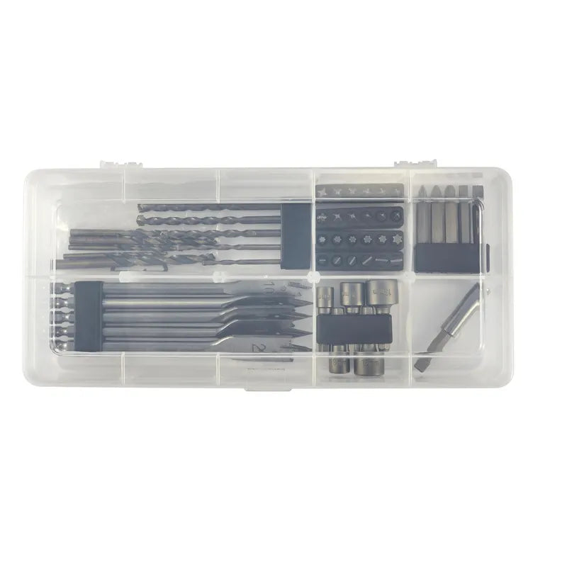 Incluye 1 pieza de taladro percutor, 1 pieza de sierra de calar, 1 pieza de sierra circular, 1 pieza de lijadora, 1 pieza de PTA50, 1 bolsa blanda.
