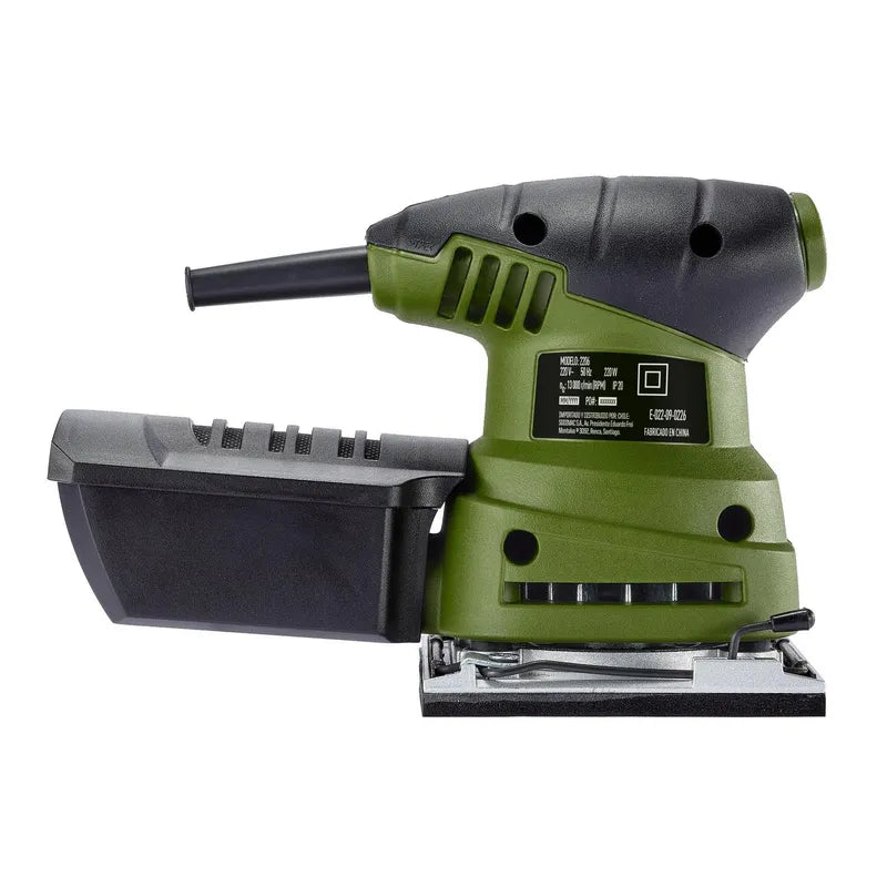 Características Taladro: 650W, mandril sin llave de 13 mm, velocidad variable. Sierra circular: 1300W, hoja TCT de 185 mm, velocidad única, voltaje 230V. Caladora: 600W, 230V, función pendular, mandril sin llave, toma de hoja T o U. Lijadora: 200W, 230V, lijadora de palma (1/4 de hoja).